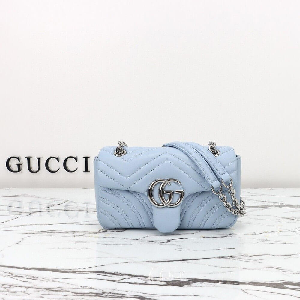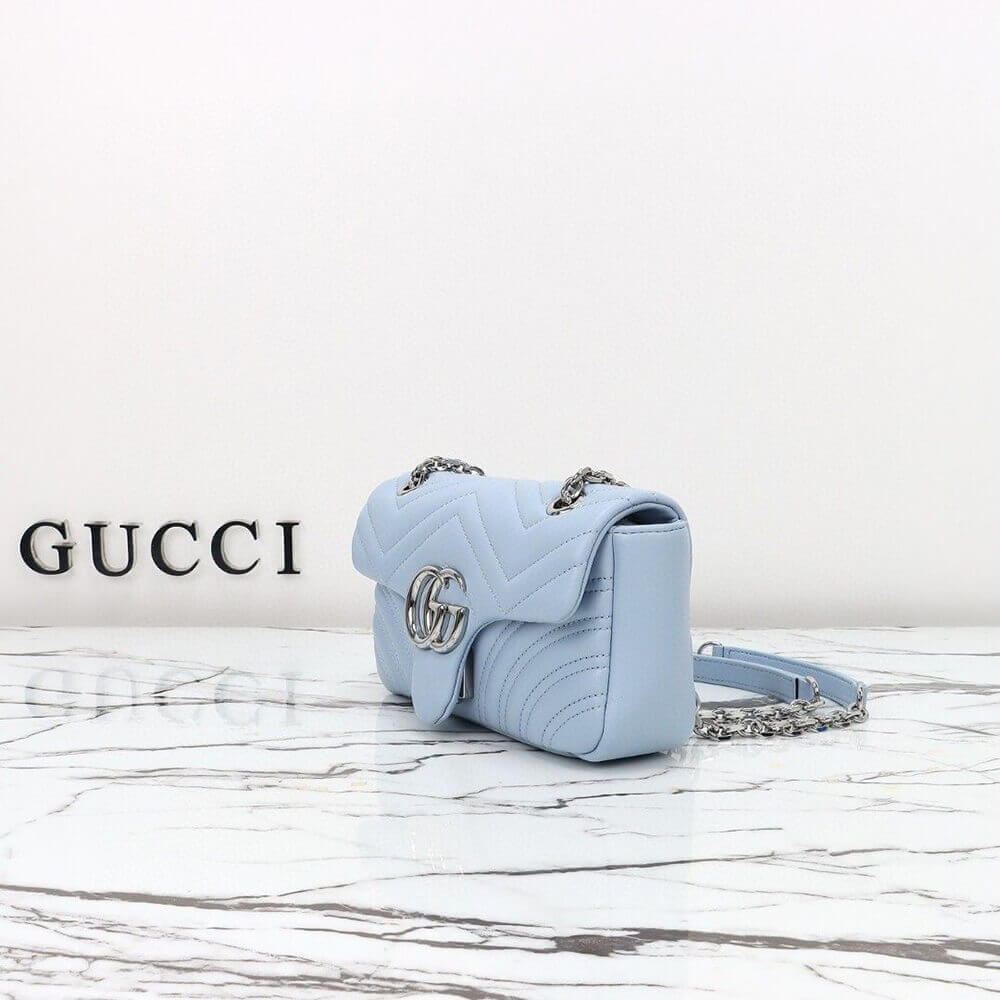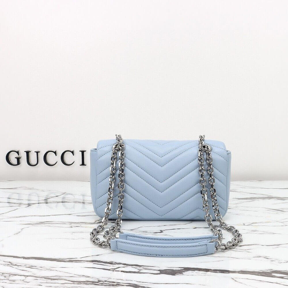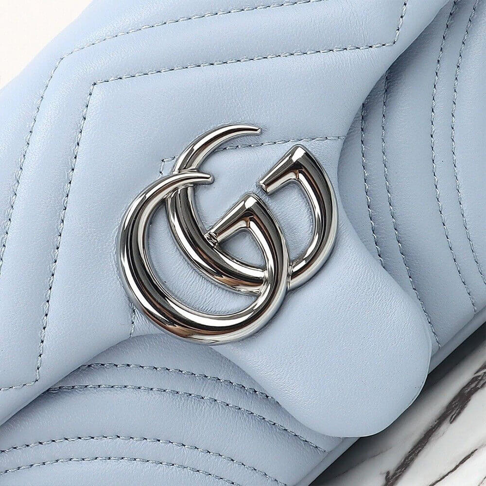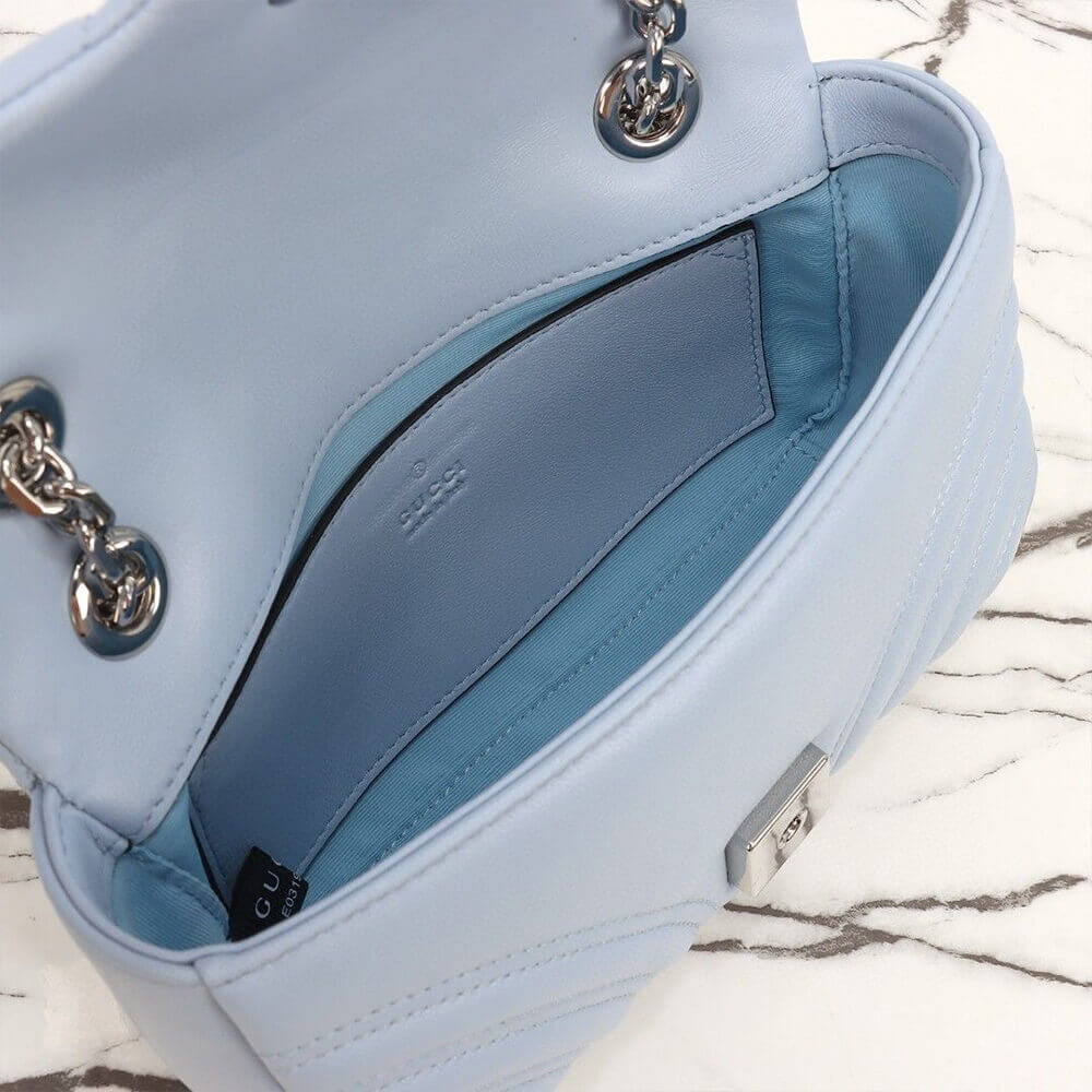 Light blue V-shaped Matelassé sheepskin leather