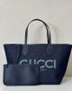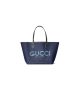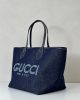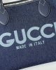 Dark blue denim on one side, beige and blue GG Supreme on the other