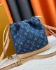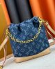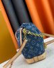 Drawstring closure with LV-engraved round charm